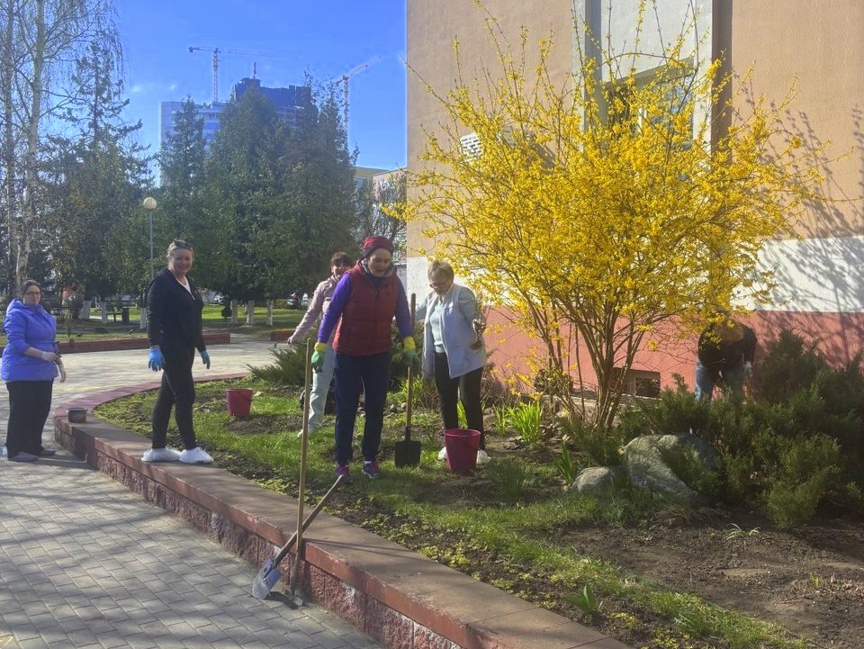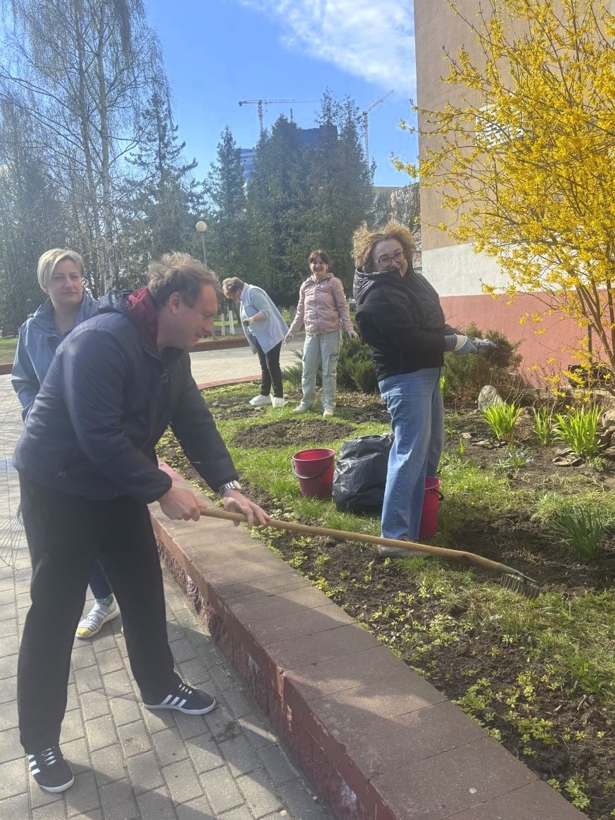 Коллектив поликлиники 18 апреля принял участие в Республиканском субботнике! Провели озеленение территории, покрасили бордюры, высадили цветы!