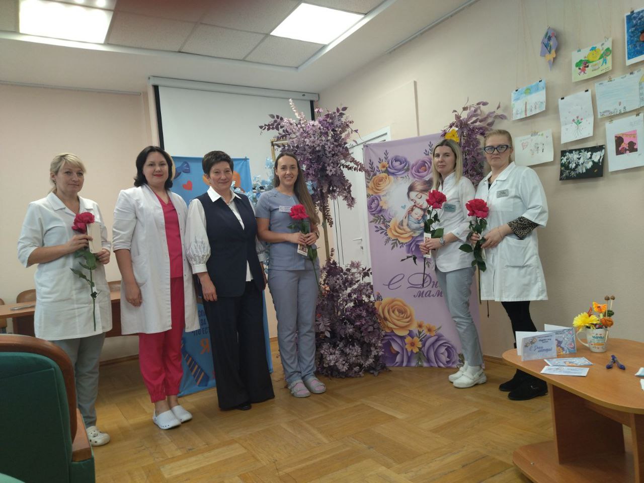 Коллектив собрался на торжественное мероприятие, чтобы отдать дань уважения самому дорогому – материнству.С тёплыми словами поздравлений и искренними пожеланиями здоровья, счастья и семейного благополучия к коллегам обратились главный врач Сорока С.А и заместитель председателя профсоюзного комитета Цапко Ю.А. Особое внимание в этот день было уделено многодетным мамам, которые получили заслуженные цветы и памятные подарки.